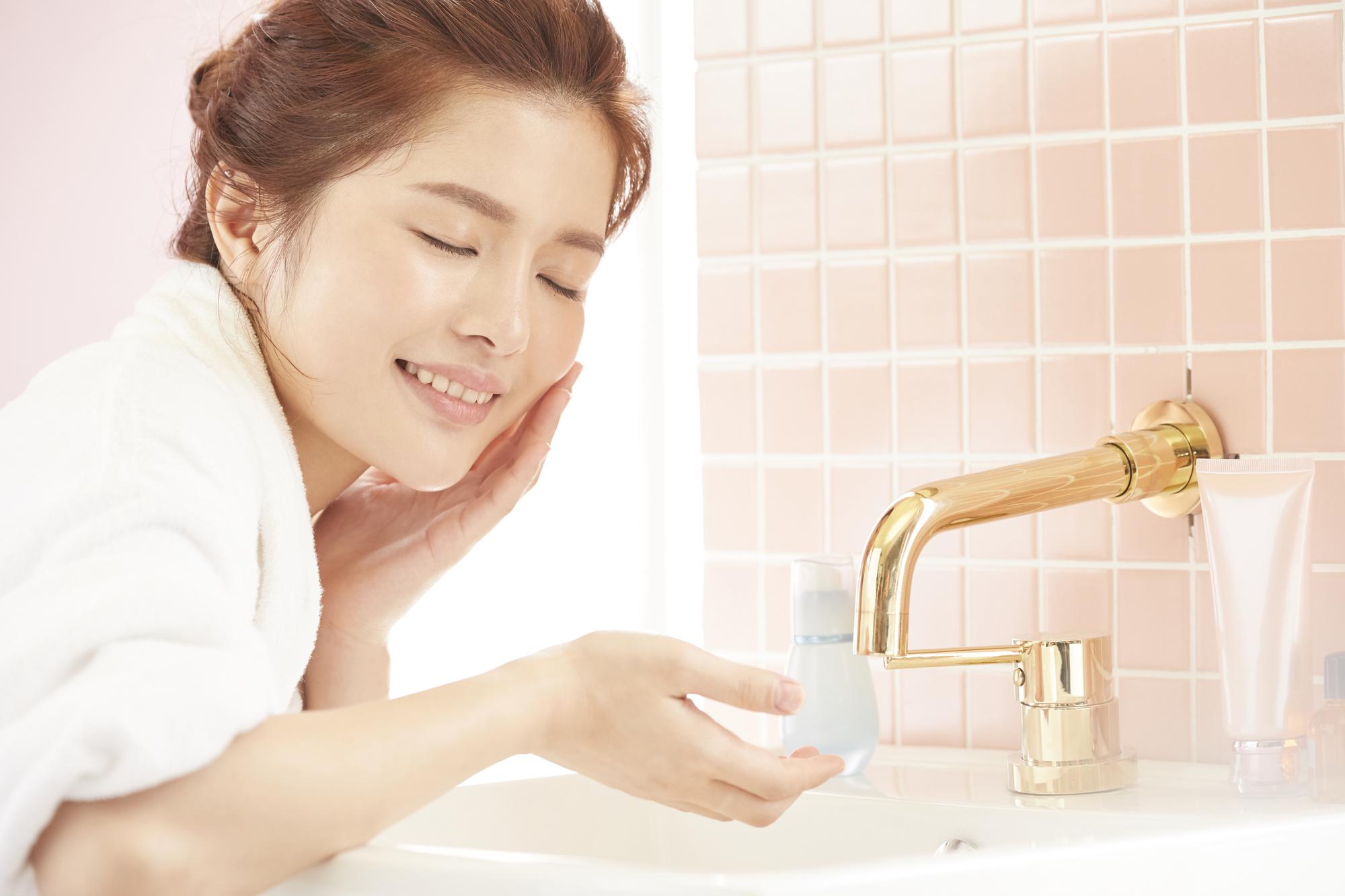 熱いお湯ですすぐと肌の油分まで落としてしまいカサついたり、逆に冷たい水だと洗い流す前に毛穴がしまってメイクが残ったままになってしまったり……。少しぬるいぐらいのぬるま湯ですすぎましょう!