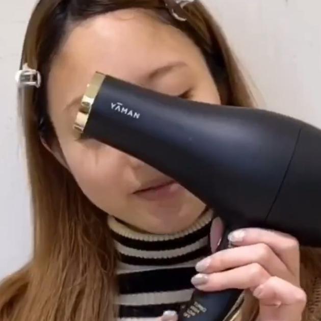 また、エクステは水に弱いのですぐにまつげを乾かすのが重要!ドライヤーで弱めの冷風をあてていきます。顔から離して、胸より下の位置から、目をつぶった状態であててくださいね。