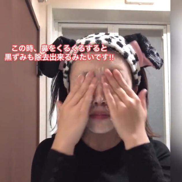そして、クリームが透明になるまでやさしく顔全体になじませます。