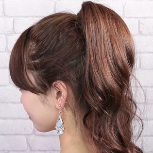 ポニーテールのゴムに髪を巻き付けます。しっかり巻きつけると、崩れにくくなりますよ!
