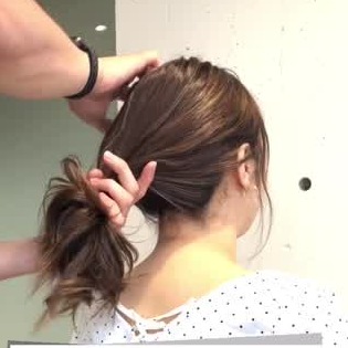 髪を1つにまとめましょう。低い位置で結ぶときれいに仕上がりますよ♪