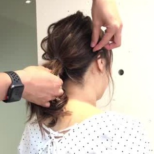 くるりんぱをして、残った髪をアレンジスティックで中へ入れ込むだけ。