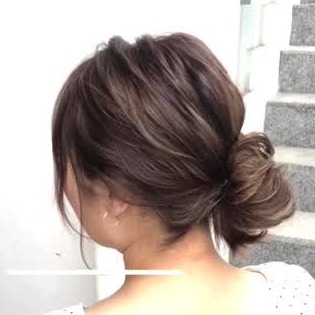 お団子ヘアを作り、くるりんぱをするだけの簡単シニヨンアレンジ。お団子の位置を低くすることで大人っぽさを演出することができます!